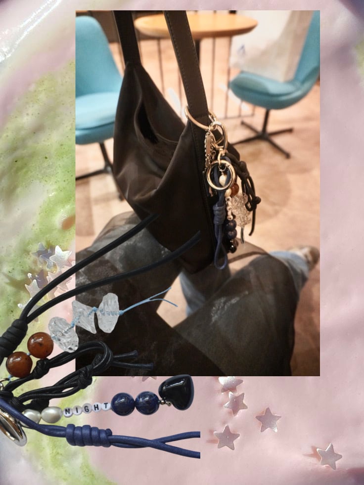 アクセントとして、日常のワードローブに彩りを添えるバックチャーム。